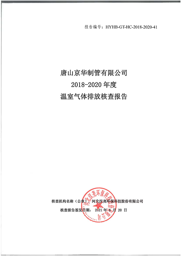 唐山京華制管有限公司2018-2020年度溫室氣體排放核查報(bào)告